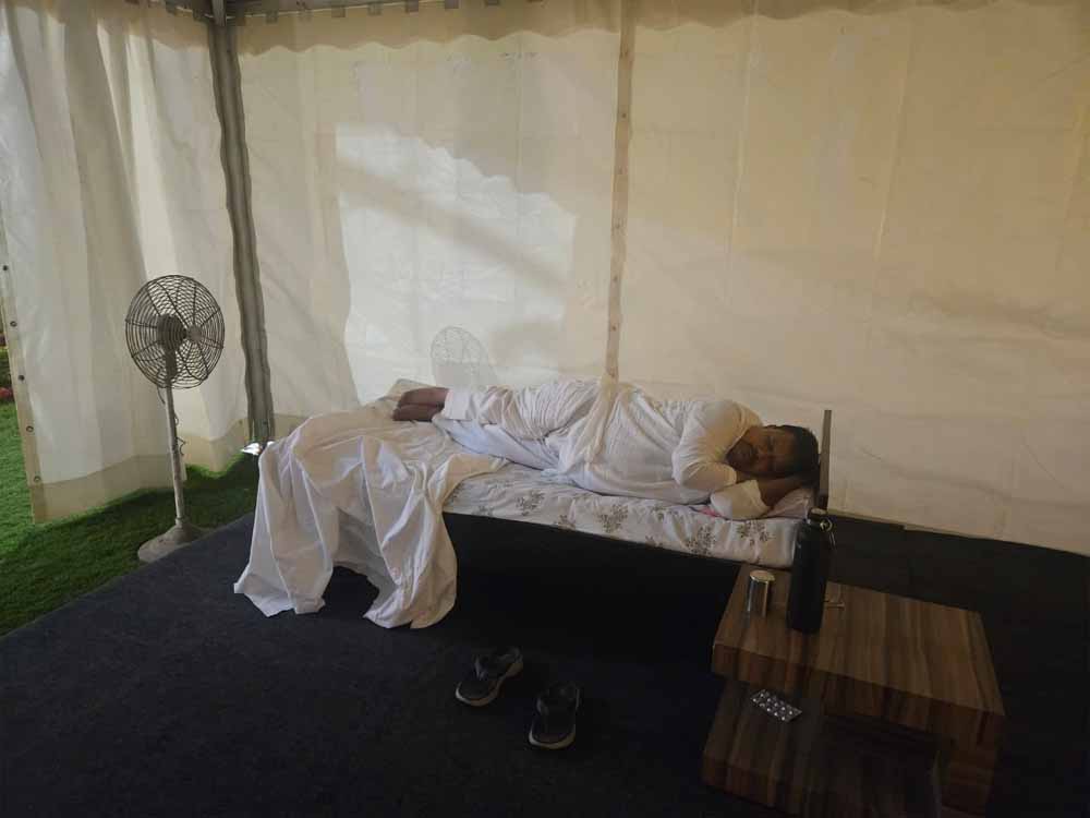 ऊर्जा मंत्री श्री प्रद्युम्न सिंह तोमर ने पर्यावरण सुरक्षा के अपने संकल्प के तहत मंगलवार की रात भोपाल स्थित अपने सरकारी आवास के समीप पार्क में टेन्ट में रात्रि विश्राम किया।