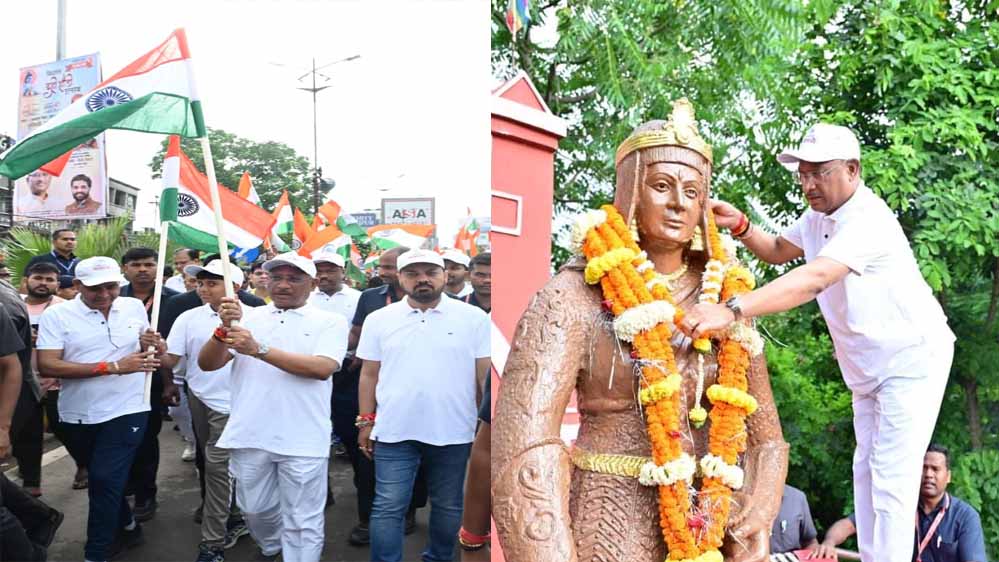 हमारा तिरंगा पूर्वजों के वर्षों के संघर्षों और बलिदान का जीवंत प्रतीक है। हम सभी तिरंगे की शान को हमेशा बनाए रखेंगे, अपने अमर बलिदानियों को कभी नहीं भूलेंगे और सभी मिलकर विकसित, समृद्ध और सशक्त छत्तीसगढ़ का निर्माण करेंगे। मुख्यमंत्री विष्णु देव साय आज राजधानी रायपुर के मरीन ड्राइव में आयोजित स्वतंत्रता दौड़ में शामिल हुए और कार्यक्रम को संबोधित किया। इस दौरान उन्होंने हजारों युवाओं के साथ स्वतंत्रता दौड़ लगाई और भारत माता और अमर बलिदानी रानी दुर्गावती की प्रतिमा पर माल्यार्पण कर उन्हें नमन किया।