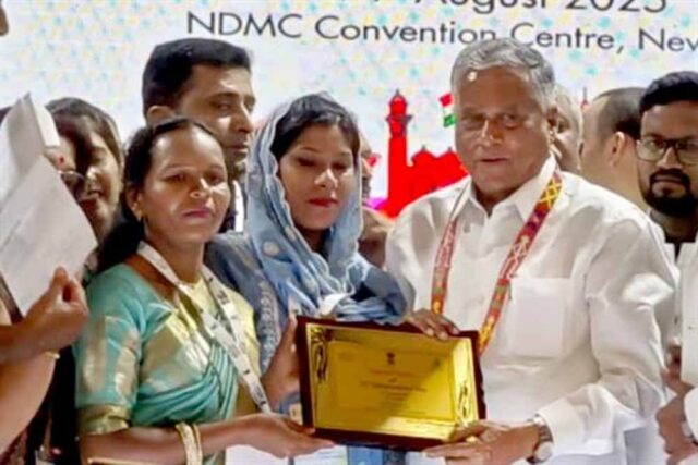 स्वतंत्रता दिवस की पूर्व संध्या पर आयोजित एक कार्यक्रम में केंद्रीय मंत्री श्री के.आर. पाटिल तथा मंत्रालय की प्रमुख सचिव सुश्री देवोलीना मुखर्जी की उपस्थिति में उन्हें स्वच्छ भारत मिशन (ग्रामीण) के अंतर्गत किए गए प्रेरणादायक नवाचारों और उत्कृष्ट कार्यों के लिए सम्मान पत्र प्रदान किया गया।