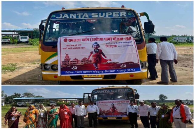 छत्तीसगढ़ शासन की महत्वाकांक्षी श्री रामलला दर्शन योजना के तीसरे चरण में एमसीबी जिले से चयनित 57 श्रद्धालुओं में से 50 श्रद्धालुओं का दल आज सुबह कलेक्टोरेट परिसर, मनेंद्रगढ़ से अयोध्या धाम के लिए रवाना हुआ। श्रद्धालुओं को अंबिकापुर रेलवे स्टेशन से विशेष ट्रेन द्वारा अयोध्या ले जाया जाएगा, जहां वे श्री रामलला के दिव्य दर्शन करेंगे। इस अवसर पर मुख्यमंत्री श्री विष्णुदेव साय ने सभी राम भक्तों को अपनी हार्दिक शुभकामनाएं और बधाई देते हुए कहा कि राज्य शासन द्वारा प्रदेश के श्रद्धालुओं को निःशुल्क अयोध्या धाम ले जाकर श्रीरामलला के दर्शन कराने की यह अनूठी पहल धार्मिक आस्था, संस्कृति और पर्यटन को नया आयाम दे रही है। मुख्यमंत्री ने कहा कि इस योजना से न केवल श्रद्धालुओं की वर्षों पुरानी आकांक्षा पूरी हो रही है बल्कि वे आर्थिक कारणों से जो यात्रा नहीं कर पाते थे, उन्हें भी अयोध्या धाम जाने का अवसर प्राप्त हो रहा है। श्रद्धालुओं ने इस योजना के लिए मुख्यमंत्री और जिला प्रशासन के प्रति आभार व्यक्त करते हुए कहा कि यह उनके लिए सपने के सच होने जैसा है। श्री रामलला दर्शन योजना के अंतर्गत श्रद्धालुओं को संपूर्ण पैकेज की सुविधा दी जा रही है, जिसमें छत्तीसगढ़ से अयोध्या तक यात्रा, रहने की व्यवस्था, मंदिर दर्शन, नाश्ता और भोजन की व्यवस्था शामिल है। श्रद्धालुओं की सुरक्षा और सुविधा को ध्यान में रखते हुए ट्रेन में टूर एक्सपर्ट, सुरक्षा कर्मी और चिकित्सकों का दल भी साथ रहेगा।