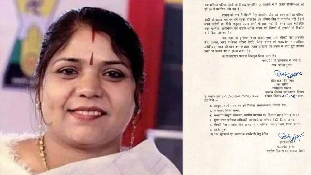 देवरी नगर पालिका अध्यक्ष नेहा जैन के खिलाफ 25 अगस्त को आदेश जारी करते हुए उन्हें पद से हटाया गया था। इस आदेश में कहा गया था कि अध्यक्ष ने नियुक्तियों और खरीद में गड़बड़ियां की हैं। आरोप लगाया गया कि उन्होंने 13 दैनिक वेतनभोगी कर्मचारियों को बिना मंजूरी के रख लिया, अध्यक्ष परिषद का गठन नहीं किया जिससे कामकाज प्रभावित हुआ, और एयर कंडीशनर खरीद में भी गड़बड़ी की।