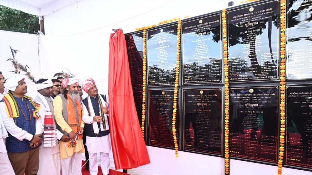 मुख्यमंत्री विष्णुदेव साय ने कांकेर जिले के नरहरपुर विकासखंड मुख्यालय में आयोजित गोंडवाना समाज के “ठाकुर जोहारनी“ कार्यक्रम में शामिल हुए। इस अवसर पर मुख्यमंत्री साय ने नरहरपुर क्षेत्र में 75 करोड़ 31 लाख 72 हजार रुपए की लागत वाले 11 विकास कार्यों का भूमिपूजन किया। इन निर्माण कार्यों में अमोड़ा-नरहरपुर मार्ग ( लंबाई 16 कि.मी.) के चौड़ीकरण कार्य पर 40 करोड़ 22 लाख 71 हजार रुपये स्वीकृत किए गए हैं। इसी भैंसमुण्डी से झलियामारी मार्ग (लंबाई 4.67 कि.मी.) पर 4 करोड़ 90 लाख 16 हजार रुपये का कार्य शामिल है। साथ ही नरहरपुर हाई स्कूल बिरनपुर, नावडबरी और रावस में तीनों स्कूल भवन निर्माण कार्यों पर 75.23-75.23 लाख रुपये की लागत से निर्माण कार्यों का भूमिपूजन कार्य शामिल है।
