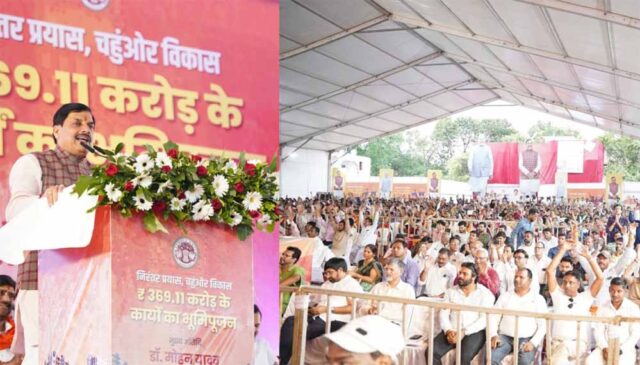 एमपी में नवरात्र का उल्लास चरम पर है। जगह जगह कन्या पूजन और भोज आयोजित किए जा रहे हैं। उज्जैन में ऐसे ही एक कार्यक्रम में सीएम डॉ. मोहन यादव भी शामिल हुए। उन्होंने विक्रमादित्य क्लॉथ मार्केट में कन्या पूजन किया। उज्जैन में सीएम मोहन यादव ने 369 करोड़ के विकास कार्यों का भूमिपूजन भी किया। इस मौके पर उन्होंने प्राचीन हरसिद्धि माता मंदिर में नित्य होनेवाले एक चमत्कार का भी जिक्र किया। सीएम मोहन यादव ने बताया कि कैसे आरती के समय माता का झूला अपने आप झूलने लगता है। मुख्यमंत्री डॉ. मोहन यादव रविवार को उज्जैन पहुंचे और अनेक कार्यक्रमों में शामिल हुए। उन्होंने नवरात्रि पर्व के अवसर पर कन्या पूजन भी किया। उज्जैन में 121 स्थानों पर एक साथ कार्यक्रम आयोजित कर 25 हजार कन्याओं का पूजन किया गया।