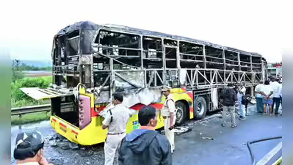 बता दें कि शुक्रवार को बस और बाइक की टक्कर के बाइक बस के नीचे आकर रगड़ने लगी। इस वजह से उसका फ्यूल टैंक फट गया और बस भी आग का गोला बन गई। इस घटना में बस में सावर 19 यात्रियों के साथ बाइक सवार की मौत हो गई थी।