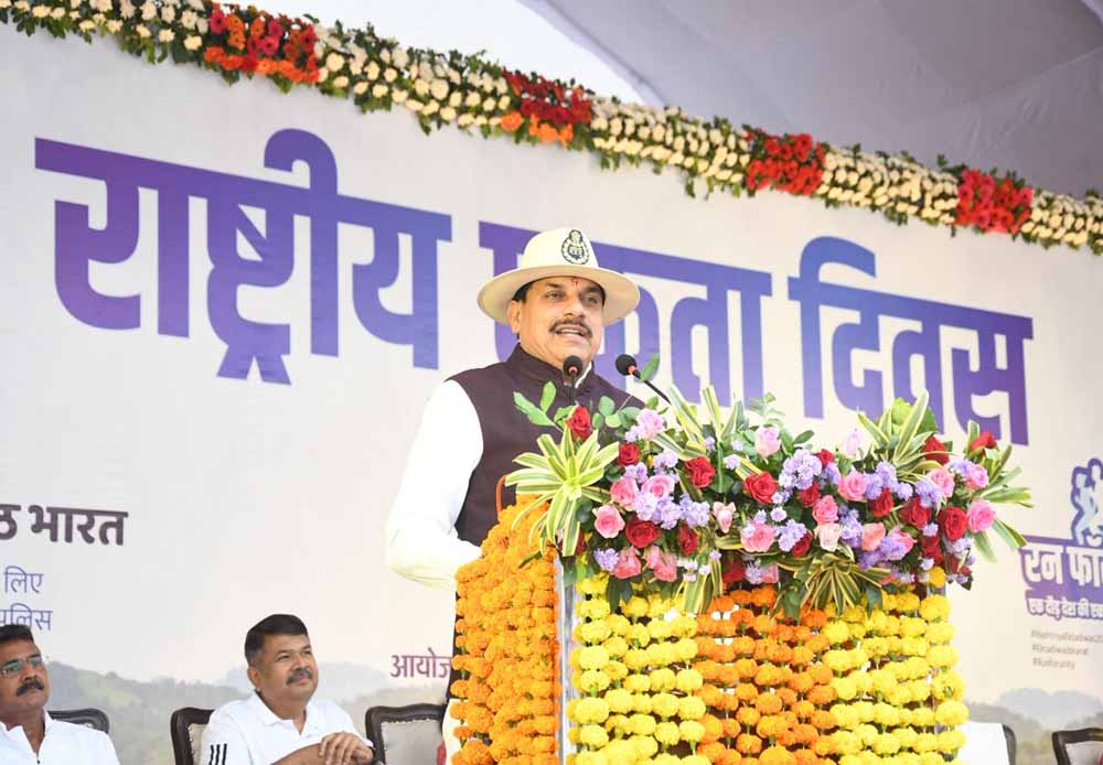 मुख्यमंत्री डॉ. मोहन यादव ने कहा है कि लौह पुरुष सरदार वल्लभ भाई पटेल के दूरदर्शी नेतृत्व, अटूट इच्छाशक्ति और अदम्य देश भक्ति ने आज़ादी के बाद बिखरे हुए भारत को एक सूत्र में बांधने के लिए 562 रियासतों का विलय कराया। भारत को एक राष्ट्र में संगठित करने का उनका कार्य इतिहास की सबसे उल्लेखनीय प्रशासनिक उपलब्धियों में गिना जाता है। अपने विशिष्ट व्यक्तित्व में कठोरता और करुणा का अद्भुत संगम लिए वे जहाँ एक ओर राष्ट्रहित प्रथम के पक्ष पर सदैव अडिग थे, वहीं देश की जनता के प्रति वे गहरी संवेदना रखते थे। वे जनता की नब्ज़ समझते थे। सरदार पटेल ने अपने जीवन से यह सिद्ध किया कि सच्चा नेतृत्व, स्पष्ट वक्तव्य, निर्णायक कार्यों, स्थिर बुद्धि, लौह संकल्प और शक्तिशाली निर्णयों से पहचाना जाता है। मुख्यमंत्री डॉ. यादव लौह पुरुष सरदार वल्लभभाई पटेल की 150 वीं जयंती के अवसर पर "एक दौड़ देश की एकता और अखंडता के लिए रन फॉर यूनिटी कार्यक्रम के अवसर पर शौर्य स्मारक में उपस्थित जनसमुदाय को संबोधित कर रहे थे। मुख्यमंत्री डॉ. यादव ने उपस्थितजन को राष्ट्रीय एकता की शपथ दिलाई और रन फॉर यूनिटी को झंडी दिखाकर रवाना किया। मुख्यमंत्री डॉ. यादव ने दीप प्रज्ज्वलित कर कार्यक्रम का शुभारंभ किया और भारत माता एवं सरदार पटेल के चित्र पर पुष्पांजलि अर्पित की। इस अवसर पर देश भक्तिपूर्ण गीतों की धुनें प्रस्तुत की गईं।