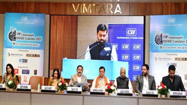 वाणिज्य एवं उद्योग मंत्री  लखनलाल देवांगन ने आज राजधानी रायपुर में कॉन्फेडरेसन ऑफ इंडियन इंडस्ट्री (सीआईआई) द्वारा आयोजित छत्तीसगढ़ एमएसएमई कॉनक्लेव का शुभारंभ किया। इस अवसर पर  देवांगन ने कहा कि प्रदेश की नई औद्योगिक नीति से प्रदेश में बेहतर औद्योगिक वातावरण का निर्माण हो रहा है। जब नई औद्योगिक नीति तैयार हो रही थी उस समय देश के अन्य राज्यों की नीति का भी अध्ययन किया गया। मुख्यमंत्री  विष्णु देव साय के नेतृत्व में प्रदेश में अब 7 लाख 75 हजार करोड़ रूपए की निवेश प्रस्ताव प्राप्त हो चुके है। निश्चित तौर पर आप सबके सहयोग से छत्तीसगढ़ नया अध्याय लिखने जा रहा है, प्रदेश में नये उद्योग धंधें स्थापित होंगे तो यहां के लोगों को रोजगार मिलेगा। प्रदेश की नई औद्योगिक नीति में अनेक रियायतें दी गई है। उद्यमियों की सुविधा के लिए सिंगल विंडो प्रणाली लागू की गई है। ताकि किसी भी उद्योगपतियों को उद्योग लगानें में कठिनाई न हो।  देवांगन ने कहा कि यह छत्तीसगढ़ के लिए गर्व की बात है कि सूक्ष्म, लघु और मध्यम उद्यम मंत्रालय नई दिल्ली की संचालक सु अंकिता पांडे छत्तीसगढ़ के बस्तर जिले के निवासी है। जो इस कार्यक्रम में शामिल हो रही है।