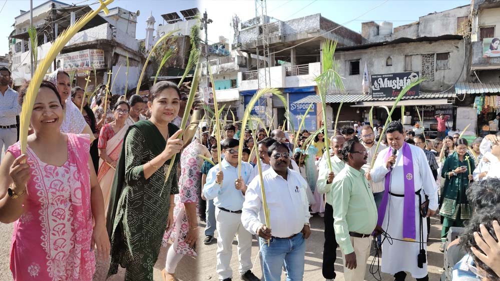 आज दिनांक 29/ 3/ 2026 को ईसाई समाज में पाम संडे का दिन खास रहा और सभी ने एक स्वर में कहा कि प्रभु हम आपके सेवक है हम पूरी कलीसिया ने मिलकर देश-विदेश के लिए प्रार्थना करी कि प्रभु देश में शांति बनाए रखें और सभी स्वास्थ्य में प्रसन्न रहे चर्च के लोगों ने खजूर की डालियां हाथ में थाम कर सुभाष पाठक से बेथलम चर्च बरखेड़ी फाटक से चर्च तक रैली निकाली इस माध्यम से उन्होंने पर्यावरण संरक्षण का भी संदेश दिया रैली में शामिल लोग यीशु के बलिदान और उसकी महिमा से जुड़े गीत एवं ह होस्ना के नारे लगाए गए जिसमें रतलाम से आए हुए स्पीकर पास्टर धूलिया ने चर्च के अंदर पाम संडे पर सभी समाज के लोगों के साथ प्रभु का वचन दिया और उन्होंने बताया कि 2000 वर्ष पहले प्रभु यीशु ने यरुशलम में प्रवेश के दिन को याद किया .